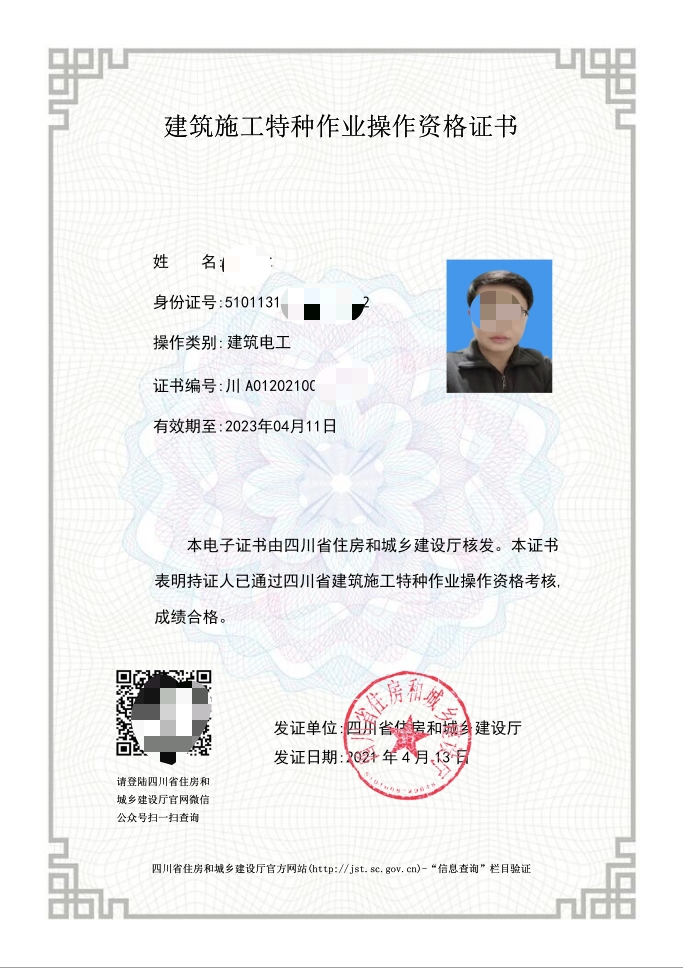 電工證,焊工證,登高架設(shè)證,高處安裝維護拆除證,電力電纜證,繼電保護證,電氣實驗證,防爆電器作業(yè)證,制冷工證,主要負責(zé)人證,安全管理人員證